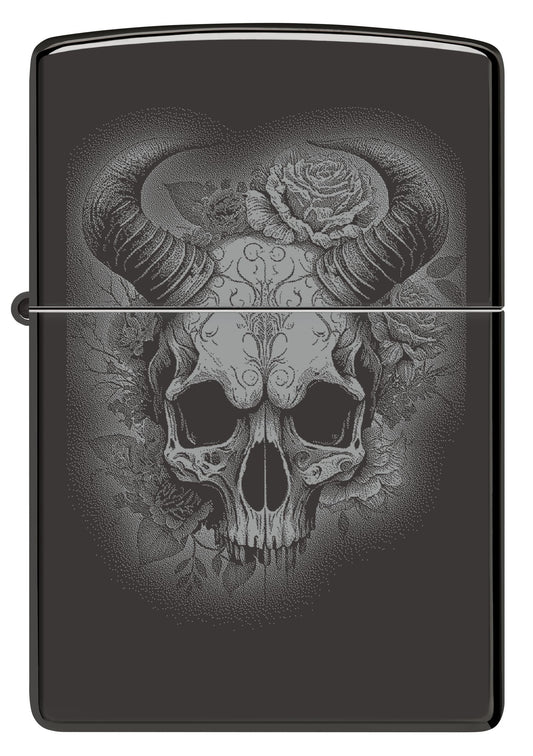 Flower Skull with Horns Design