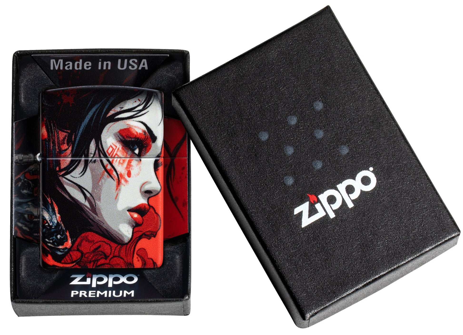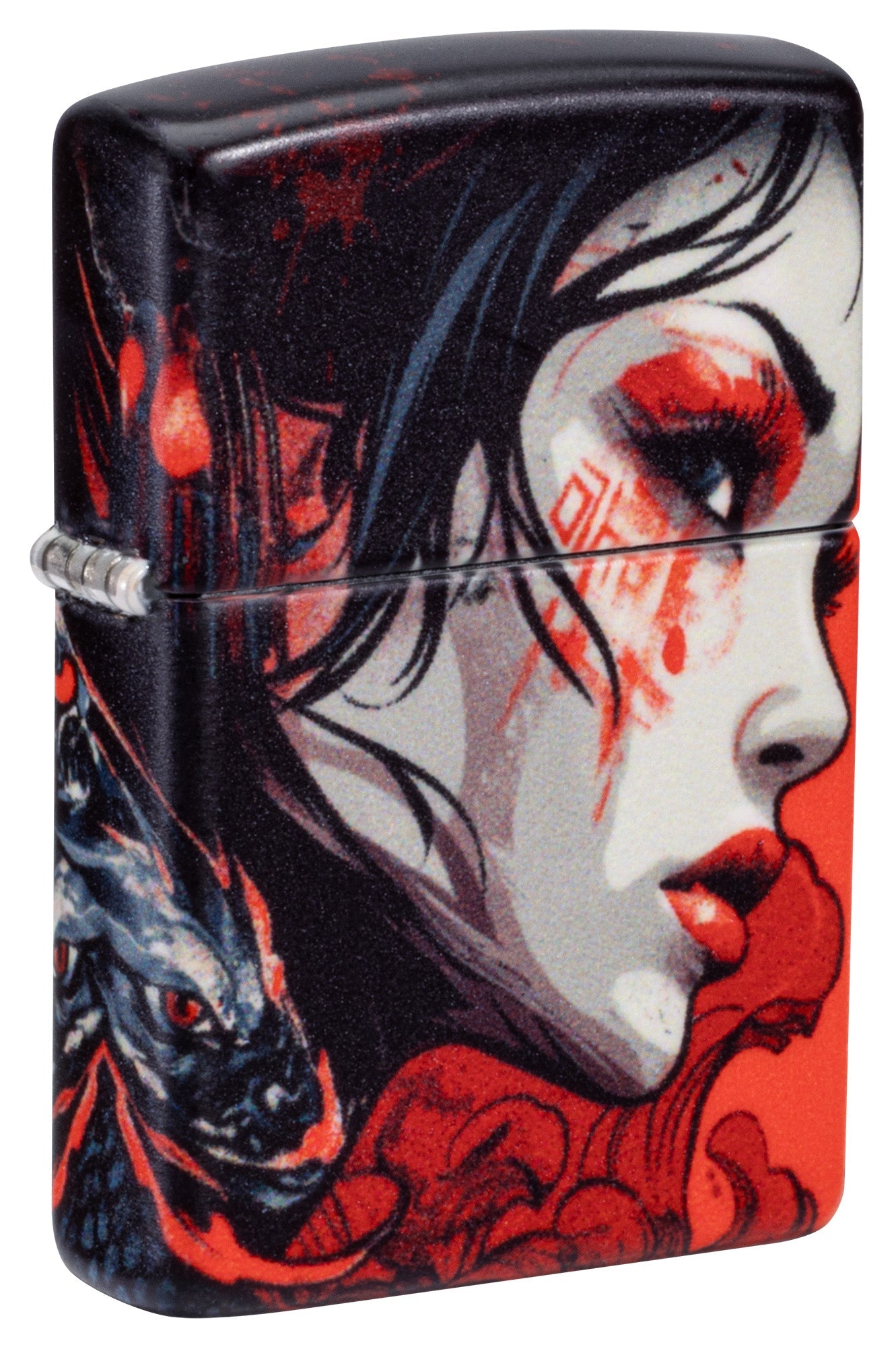 Im feudalen Japan trainierten Kriegerinnen sowohl für den Kampf als auch zur Verteidigung ihrer Häuser und ihres Landes. Dieses klassische Feuerzeug in 540° Farben zeigt eine tapfere Samuraifrau in einem lebendigen, abstrakten Design, das sich um alle Seiten des Feuerzeugs erstreckt.