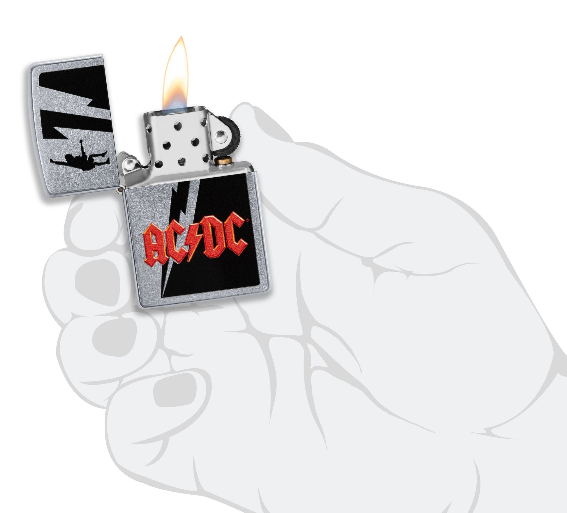 Perfekt für AC/DC-Fans: Dieses klassische Street Chrome-Feuerzeug zeigt das Logo der Band in einem auffälligen Color Image-Design.