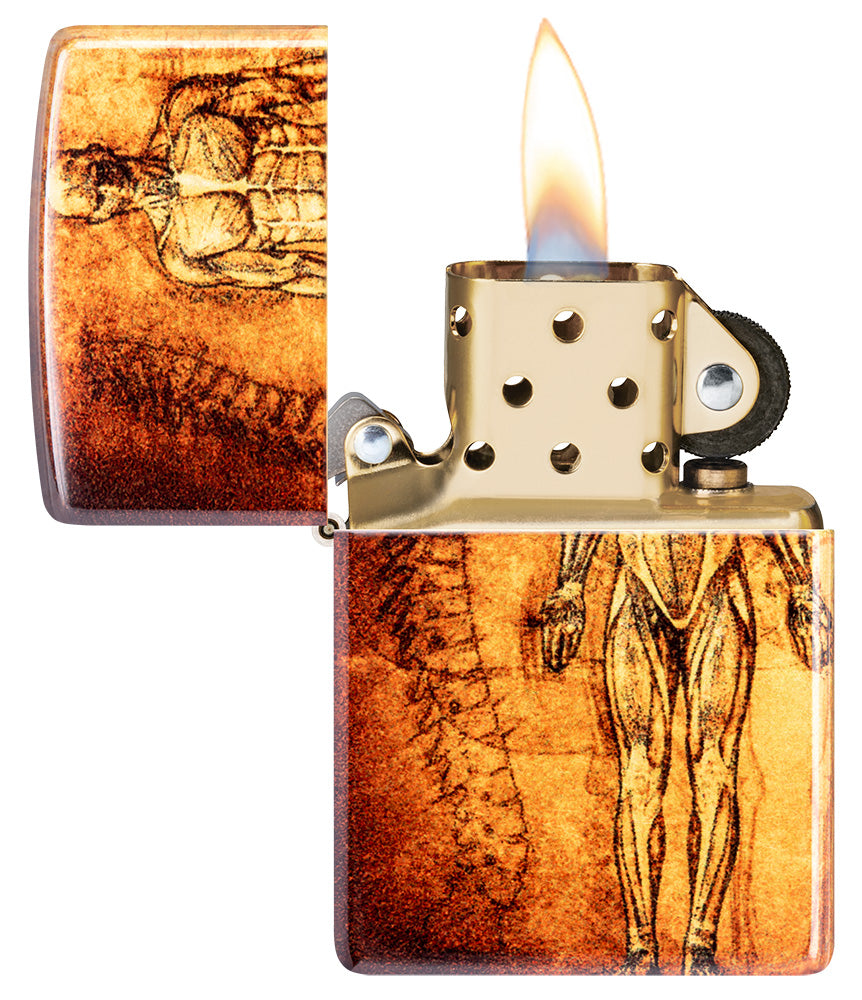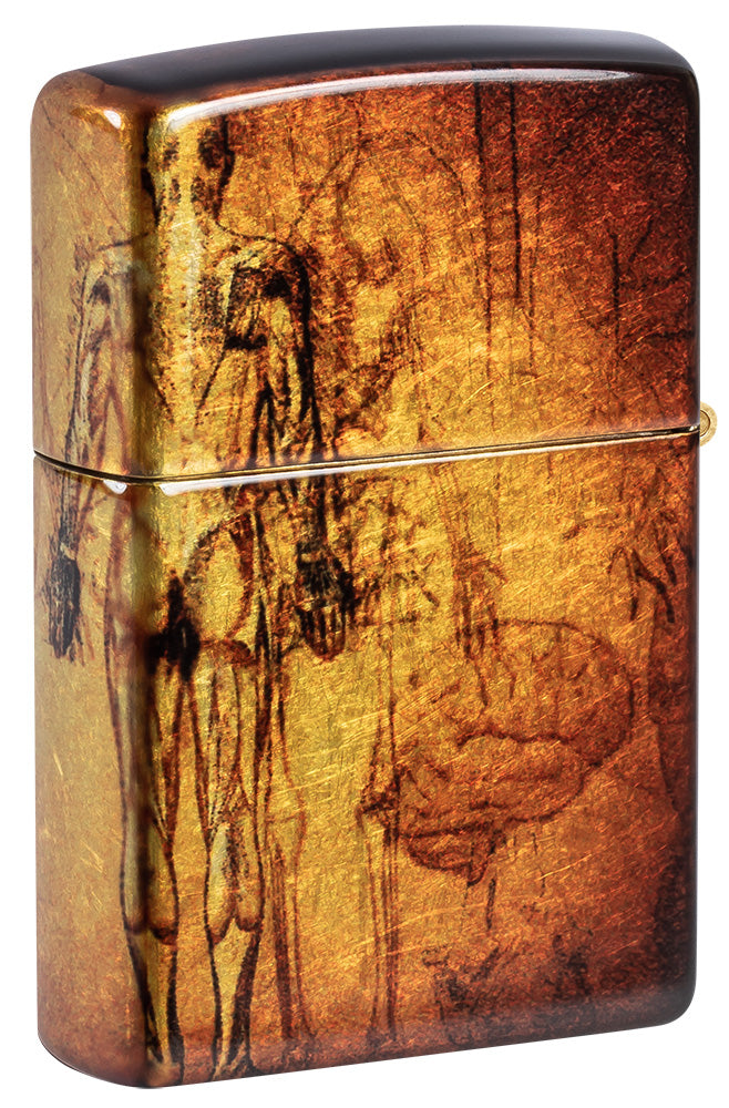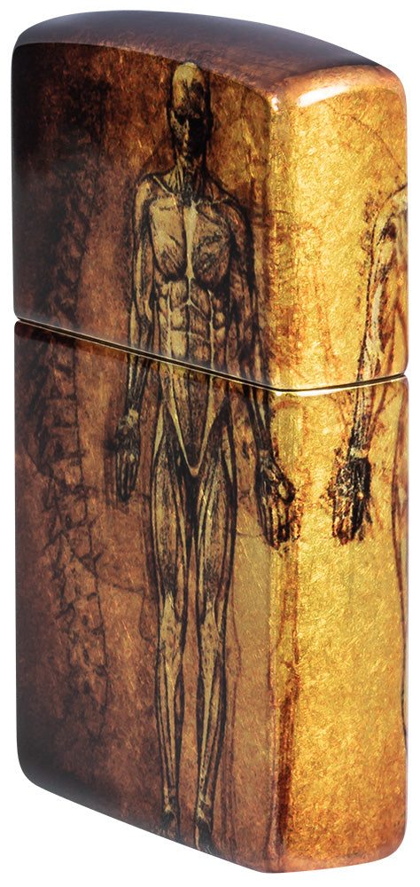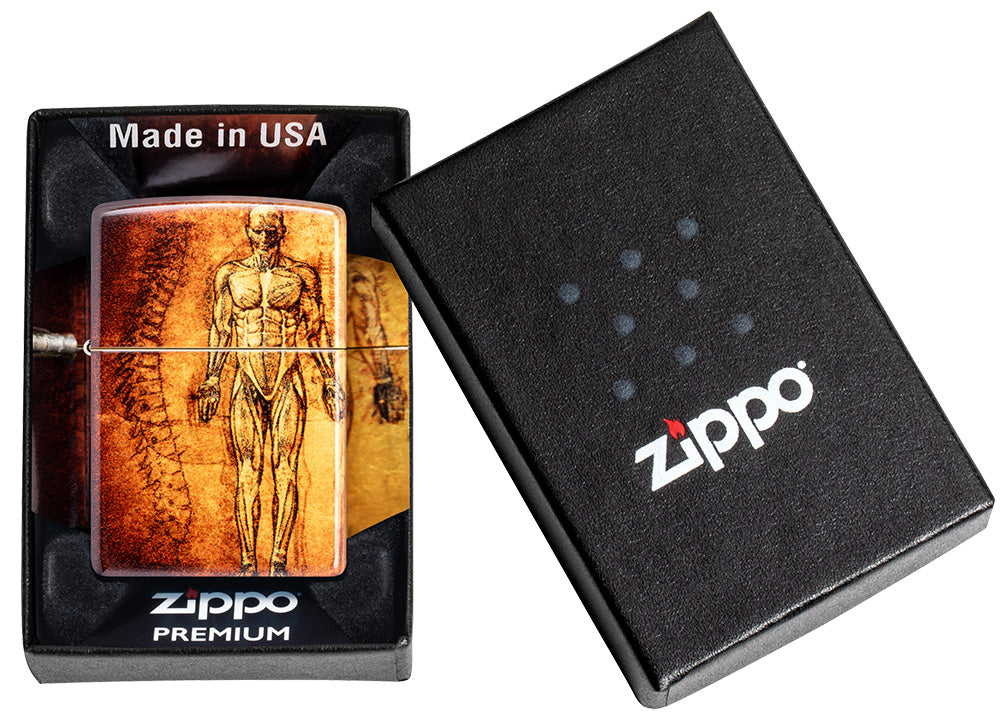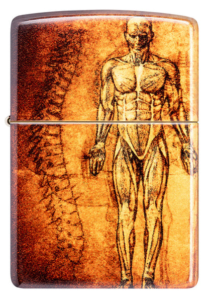 Inspiriert von antiken Skizzen und Handbüchern, zeigt dieses 540° Fusion Feuerzeug die menschliche Anatomie in einem schimmernden, komplizierten Design. In einer Geschenkbox verpackt. Für optimale Leistung mit Zippo Feuerzeugbenzin befüllen.