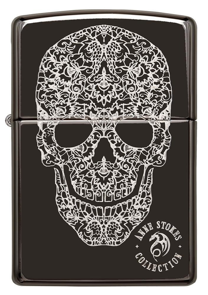 Anne Stokes kreiert wunderschöne, komplizierte Muster, um dieses Schädeldesign zu produzieren. Mit der Laser-Fancy-Fill-Technik verbessern die Designer die Lasergravur durch Hinzufügen verschiedener gerichteter Füllmuster. Es wird ein 3D-Effekt erzielt, der diesen Schädel direkt auf dem Feuerzeug heller erscheinen lässt.