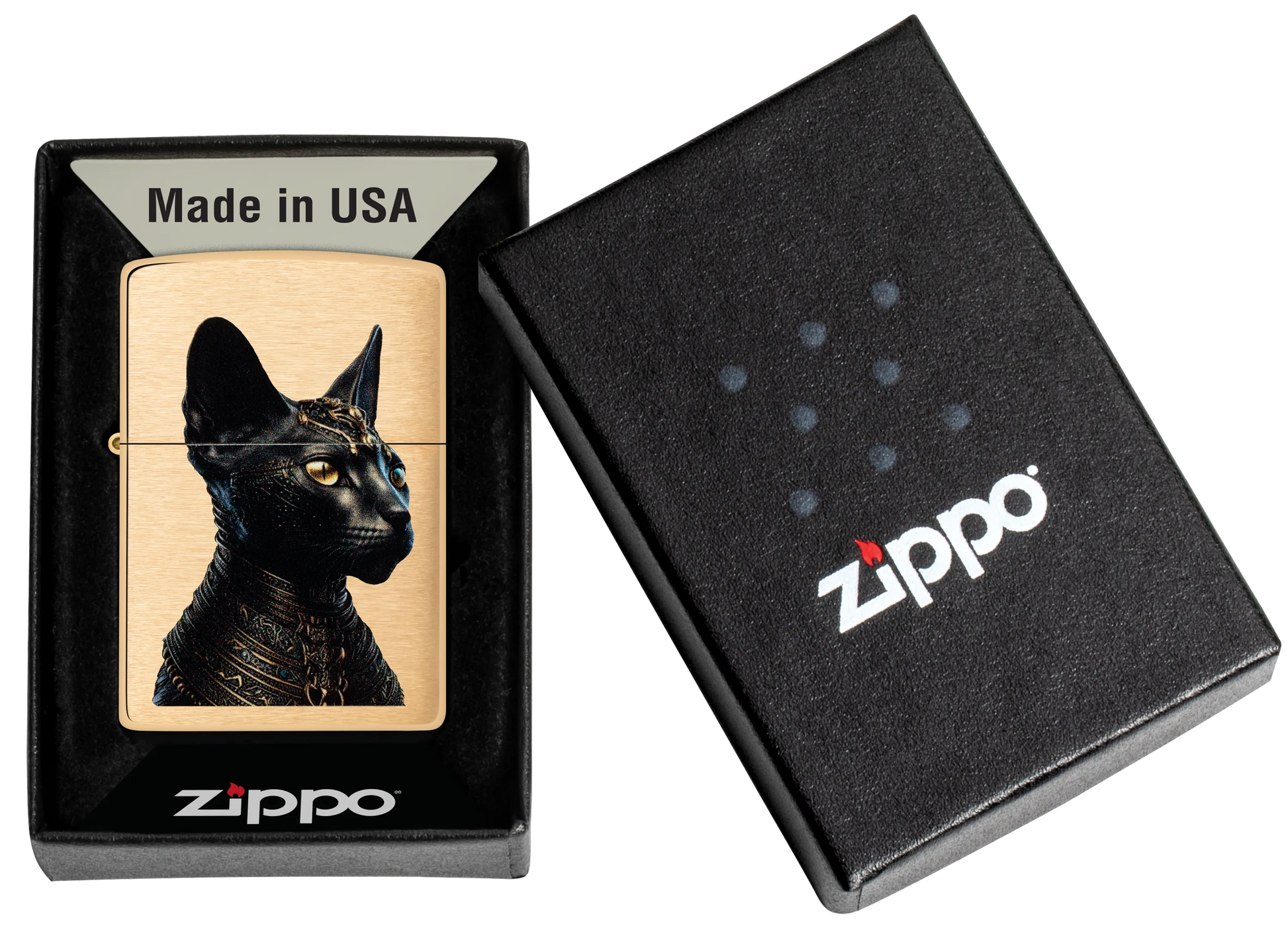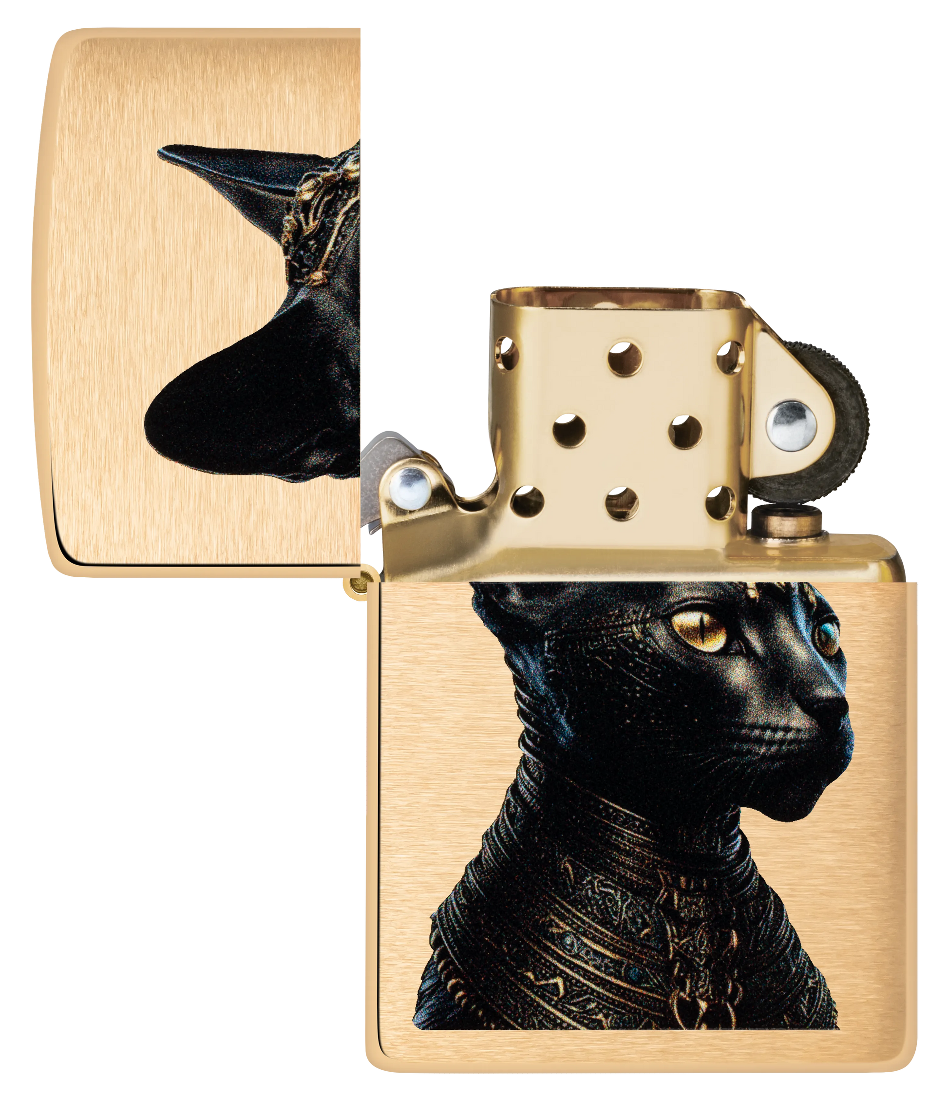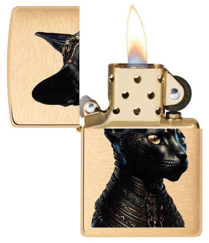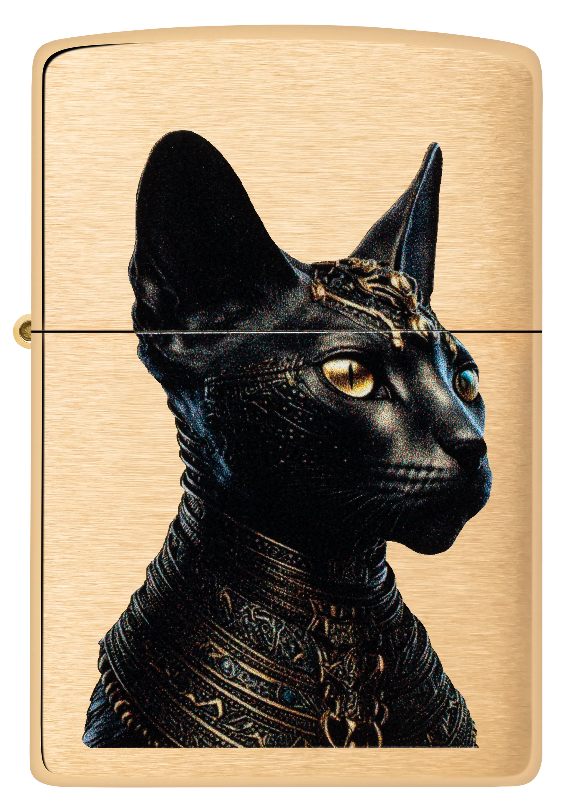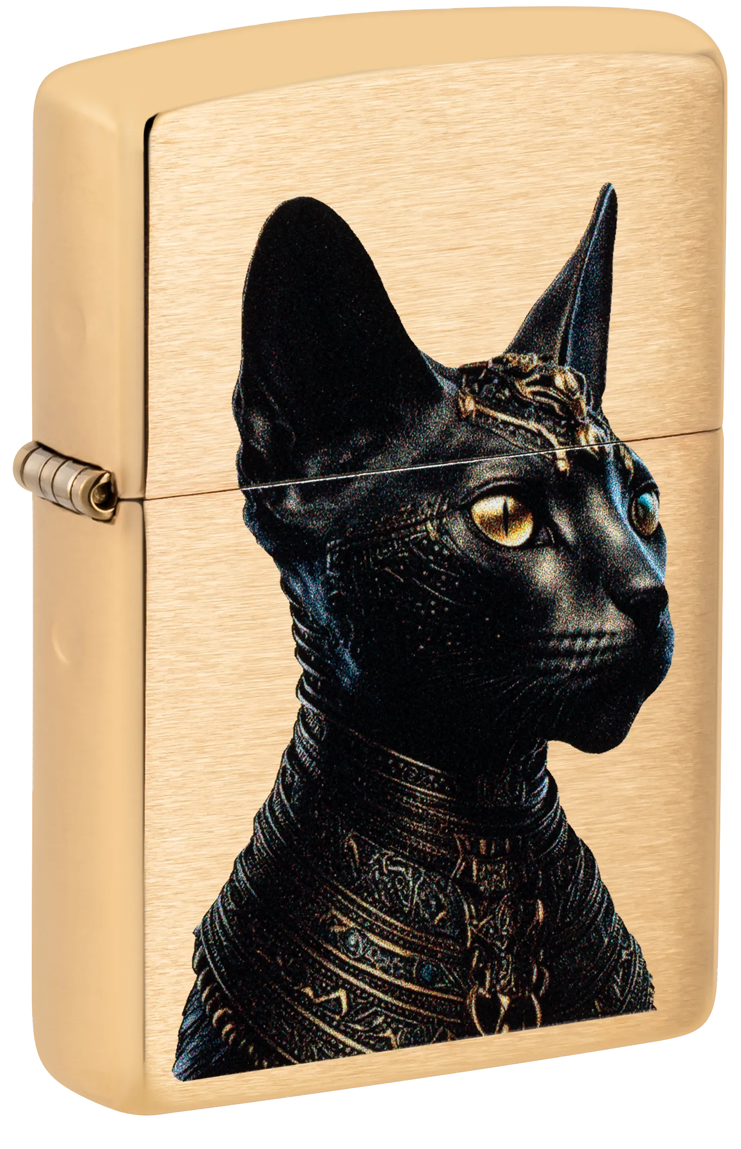 Auf diesem klassischen Feuerzeug in Brushed Brass mit königlichen Color Image-Design nimmt die ägyptische Göttin Bastet die Gestalt einer majestätischen Katze an.