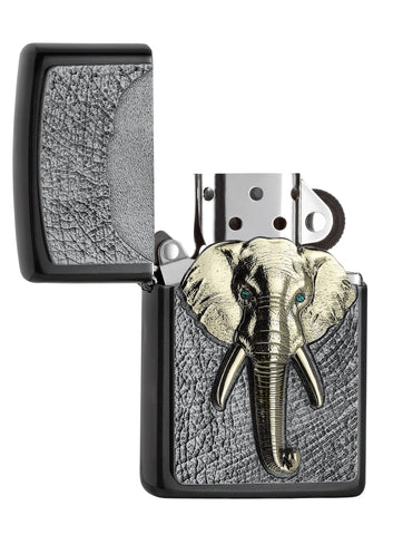 Trotz Dickhäuter leicht genug für den Transport in der Hosentasche. Feuerzeug mit Elefanten Emblem. Kristall Elemente als Augen.