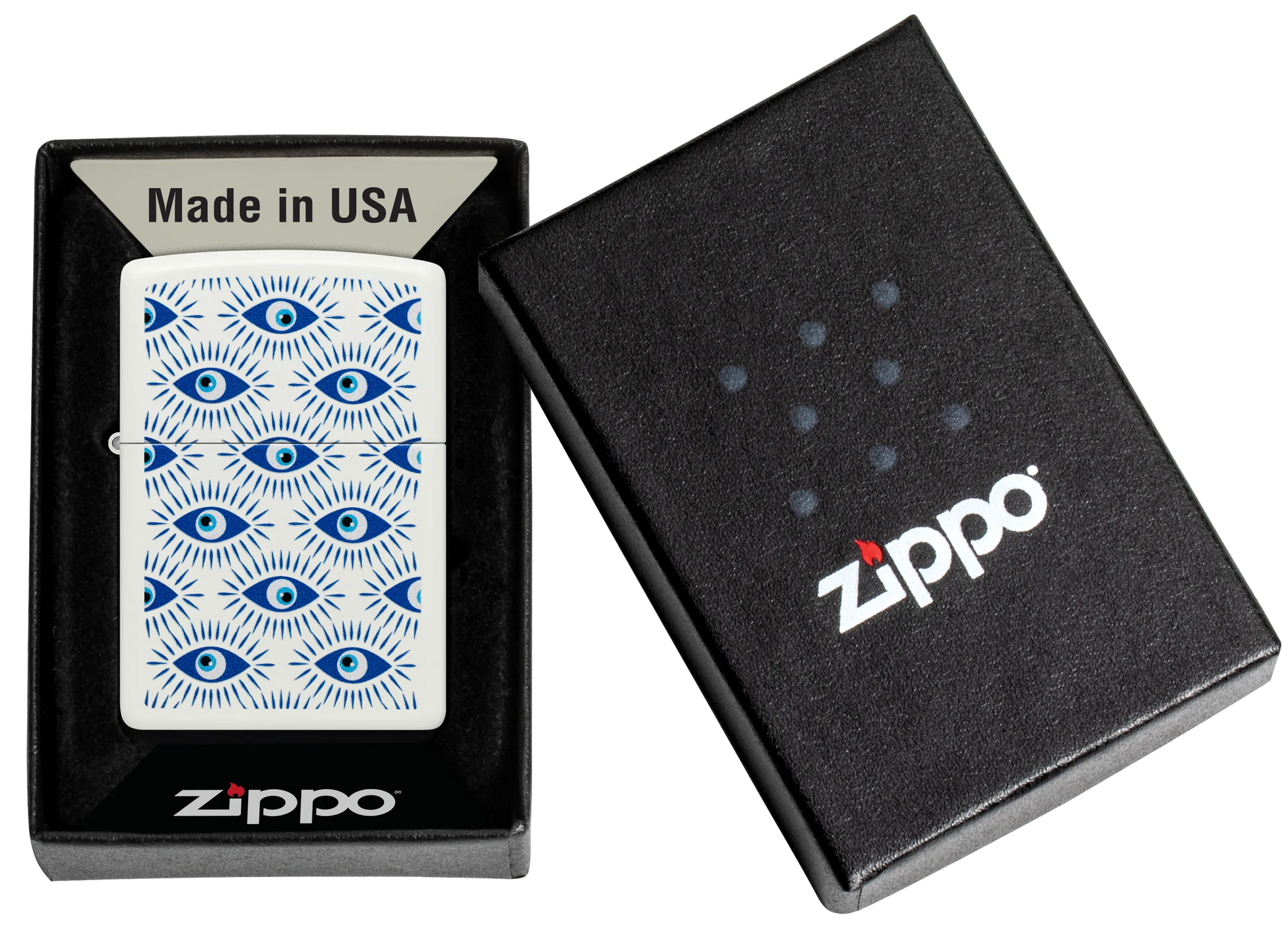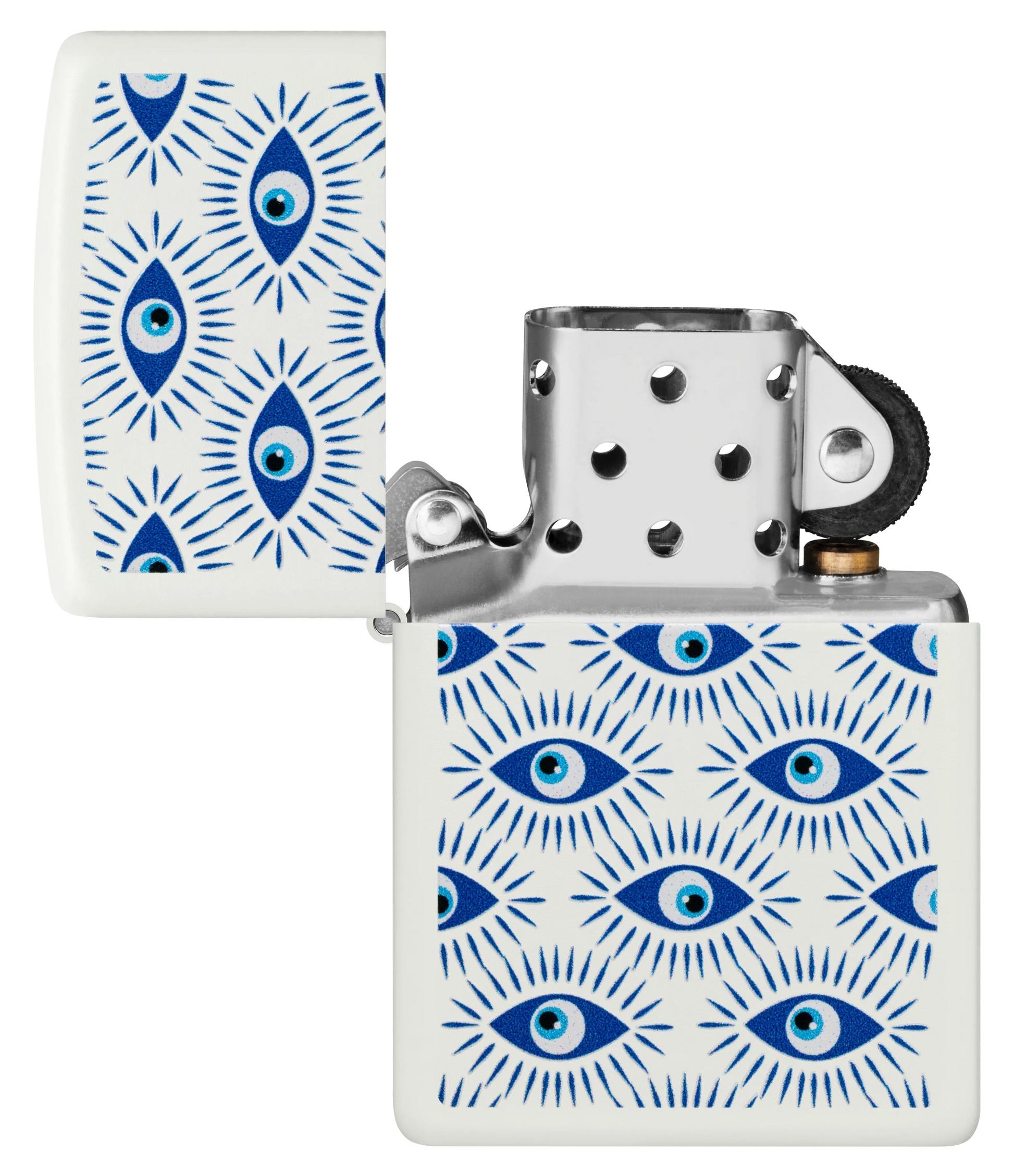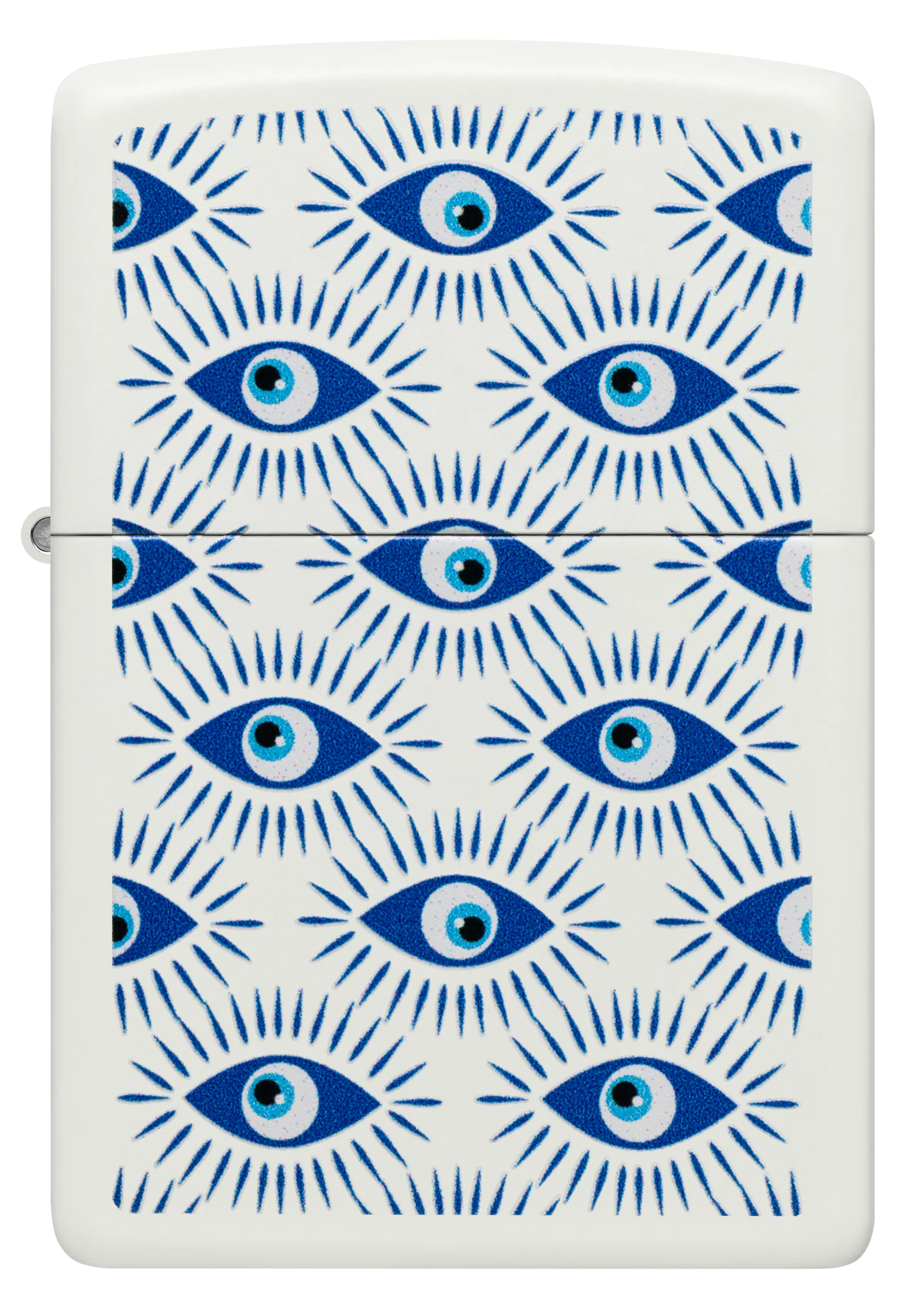 Schütze dich mit diesem Feuerzeug in klassischem White Matte vor bösen Mächten. Das leuchtende Color Image-Design ist mit „bösen Augen“ bedeckt, die in vielen Kulturen als Symbol für Schutz vor schlechten Omen gilt.