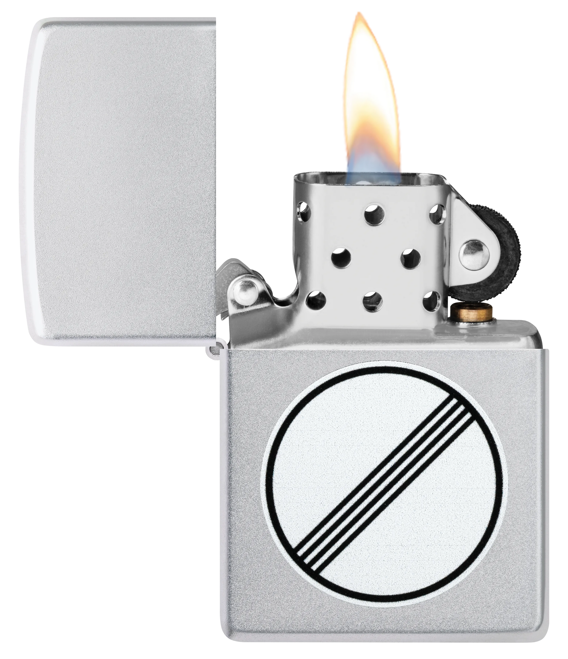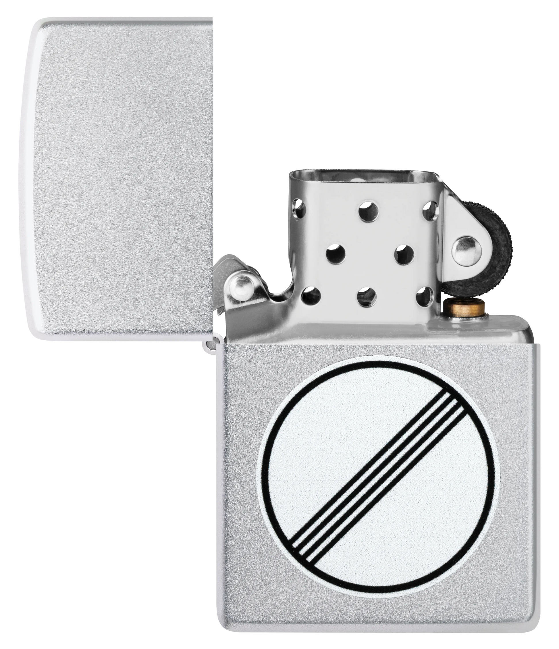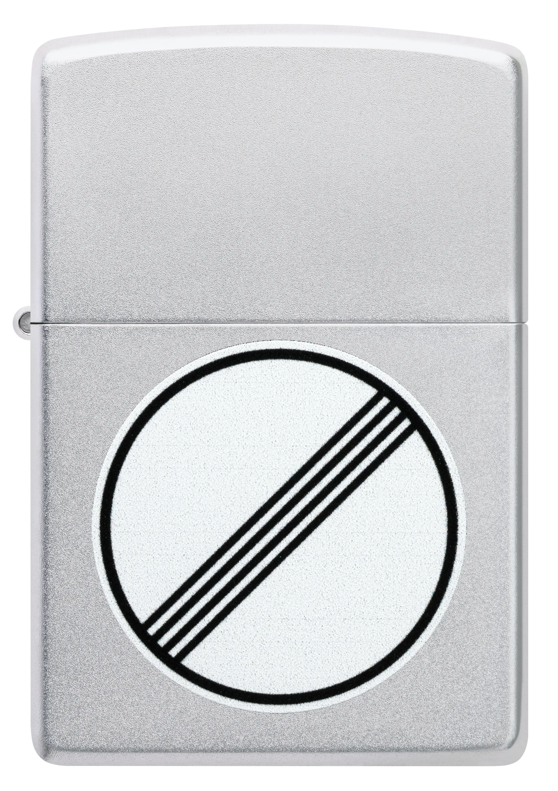 Mit diesem klassischen Feuerzeug in Satin Chrome werden Erinnerungen an die Fahrt auf der legendären Autobahn wach. In kräftigem Color Image-Design ziert das bekannte Schild, das Geschwindigkeitsbegrenzungen aufhebt, die Oberfläche dieses Feuerzeugs.