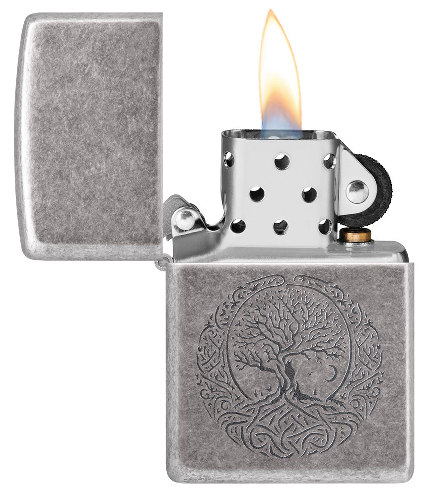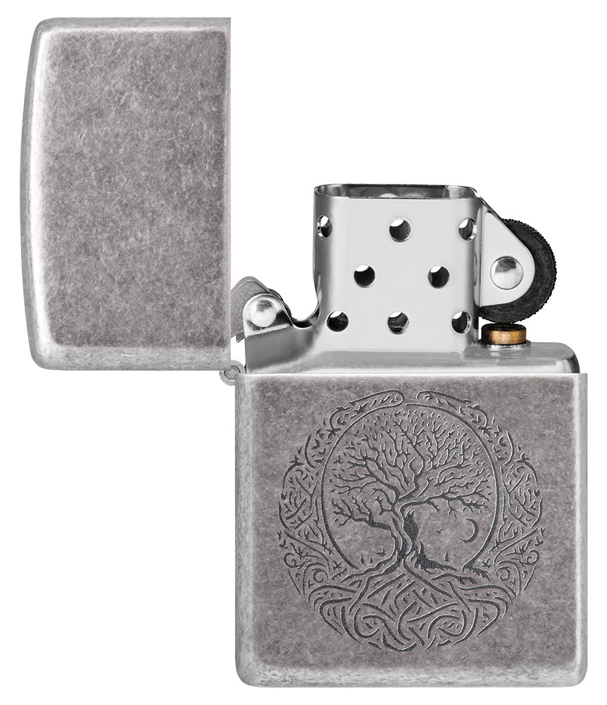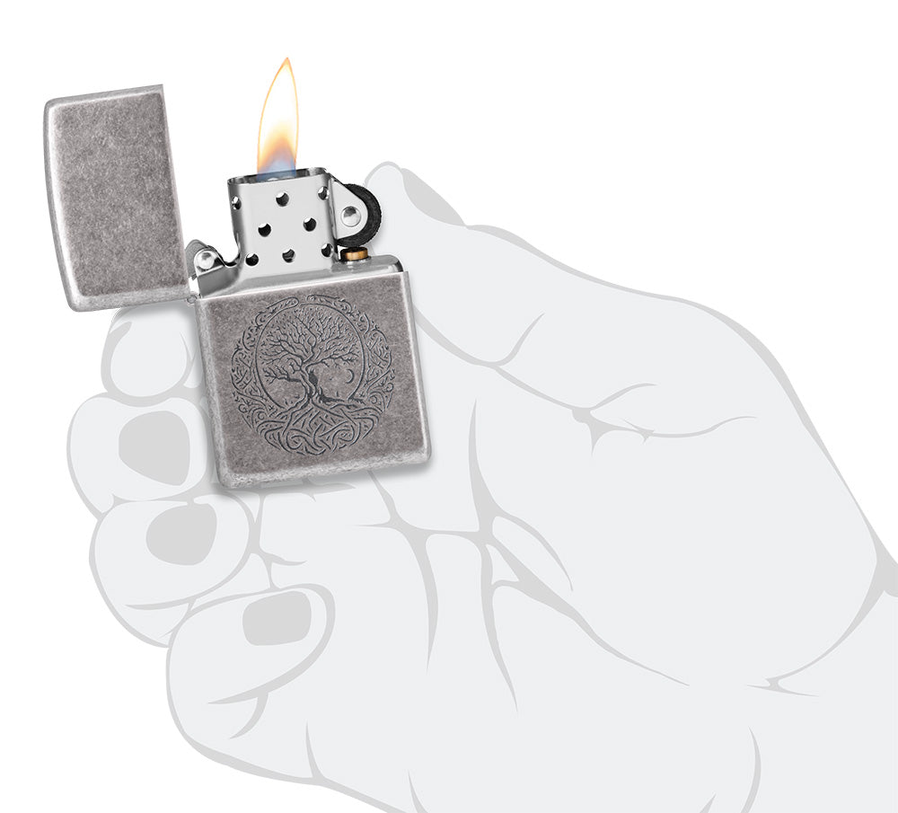 Auf diesem klassischen Feuerzeug in Antique Silver wurde das bekannte Lebensbaum-Symbol, das die Verbundenheit mit der Natur, der Vergangenheit und der Gegenwart repräsentiert, mit unserem Lustre-Verfahren festgehalten.