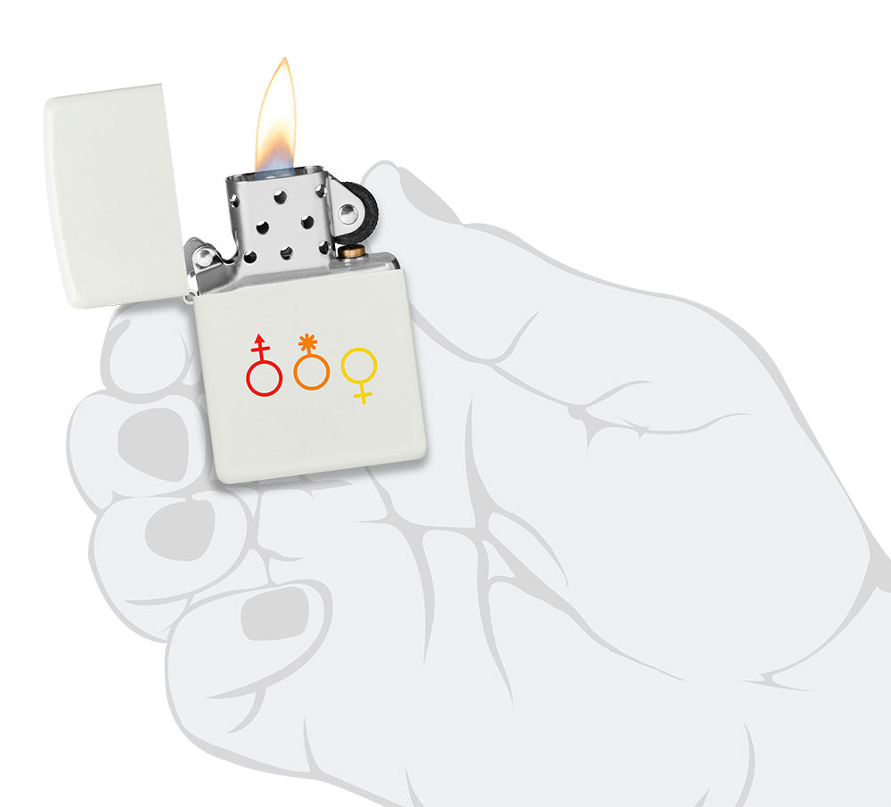 Zeigen Sie Ihren Stolz mit diesem klassischen White Matte-Feuerzeug. Das gestochen scharfe Color Image-Design erscheint auf zwei Seiten und repräsentiert verschiedene Ausdrucksformen.