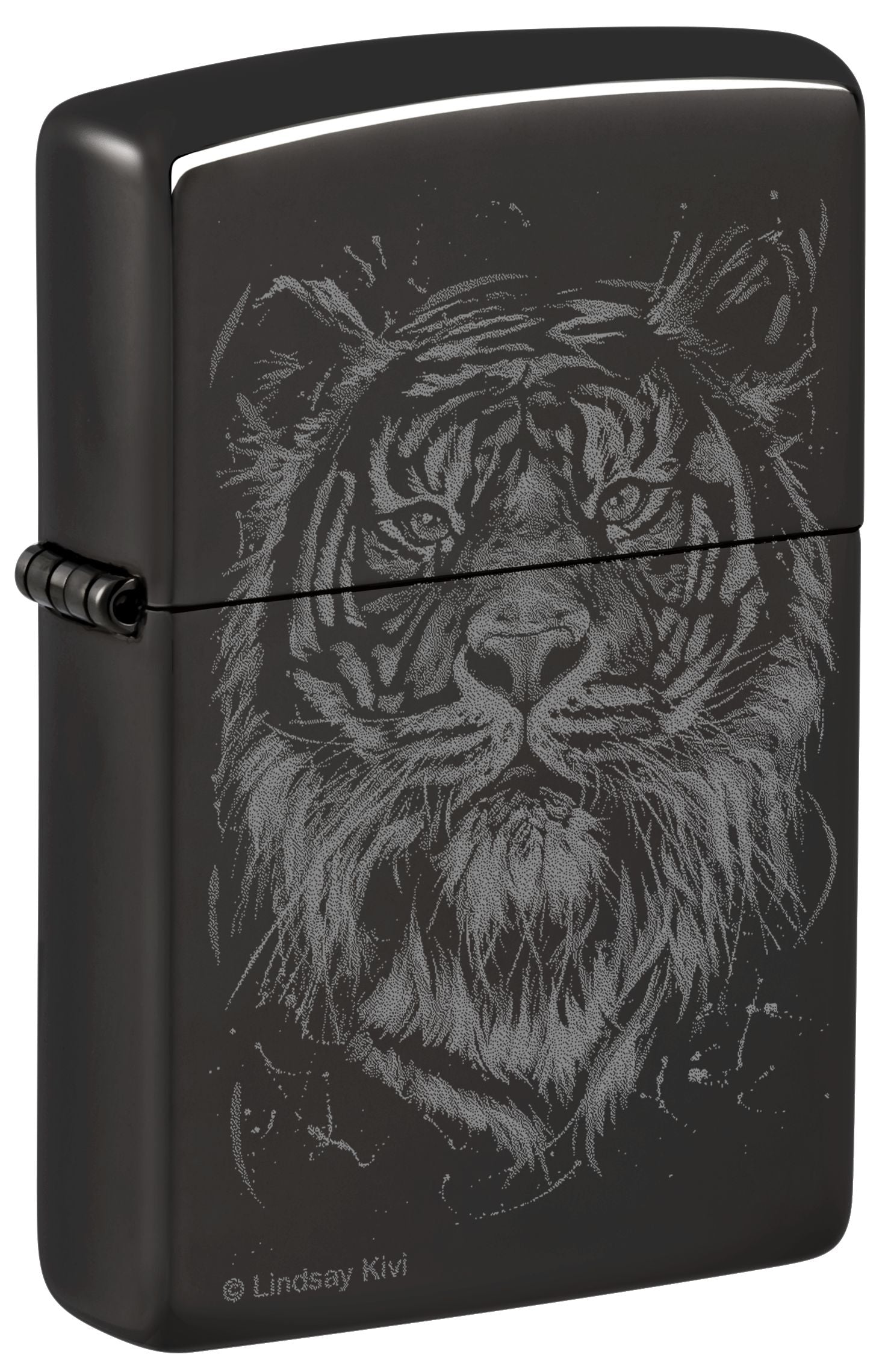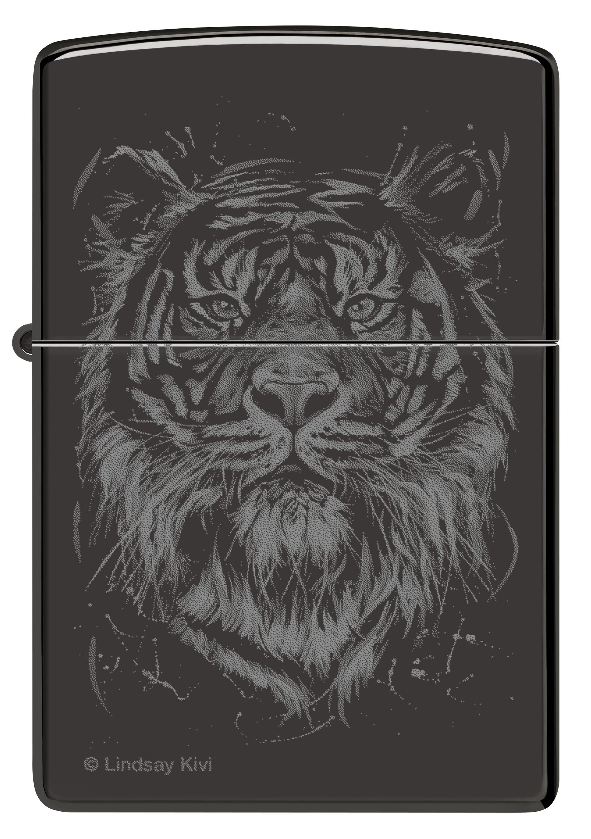 Die auf Tierporträts spezialisierte Künstlerin und Umweltschützerin Lindsay Kivi bekräftigt mit ihrer Kunst unsere intrinsische Verbindung zur Natur und inspiriert ihr Publikum dazu, die Verbindung zu allen Lebewesen zu vertiefen. Ihr Werk The Big Cat hebt sich aus diesem klassischen High Polish Black-Feuerzeug als rauchiges Photo Image heraus.