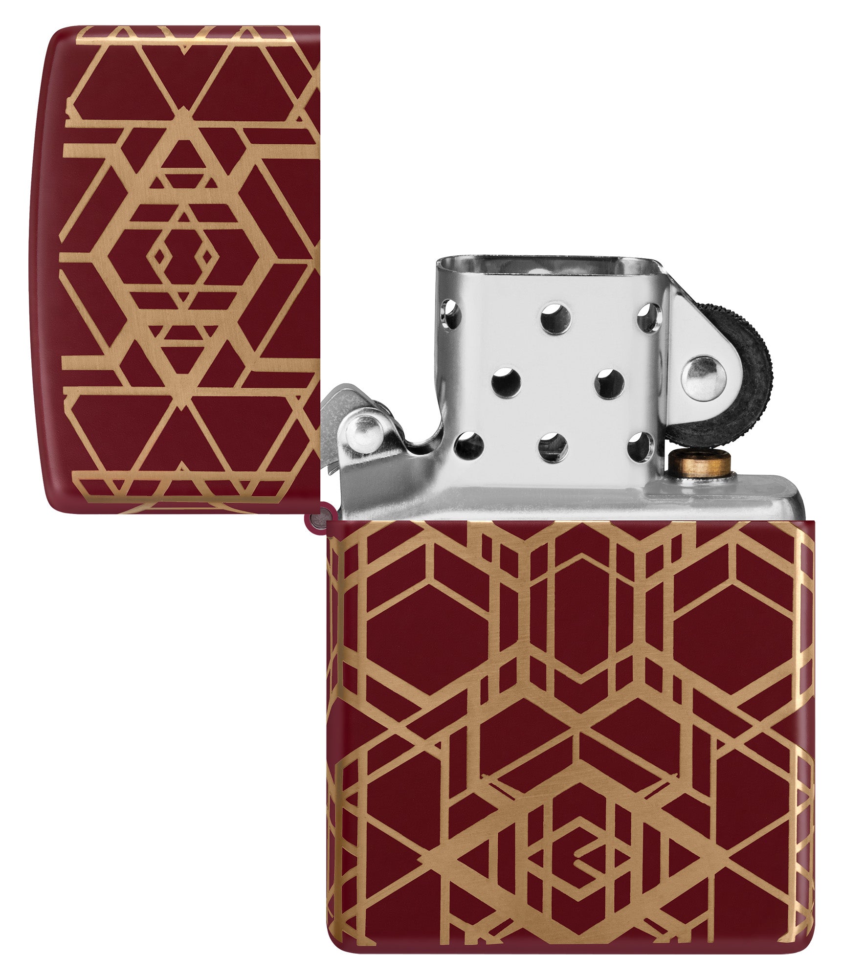 Rund um dieses klassische Feuerzeug in Merlot ziehen sich faszinierende Linien in einem klaren und nahtlosen Laser-360°-Design. Sie lassen die brillante Messingoberfläche unter der matten Oberfläche erkennen.