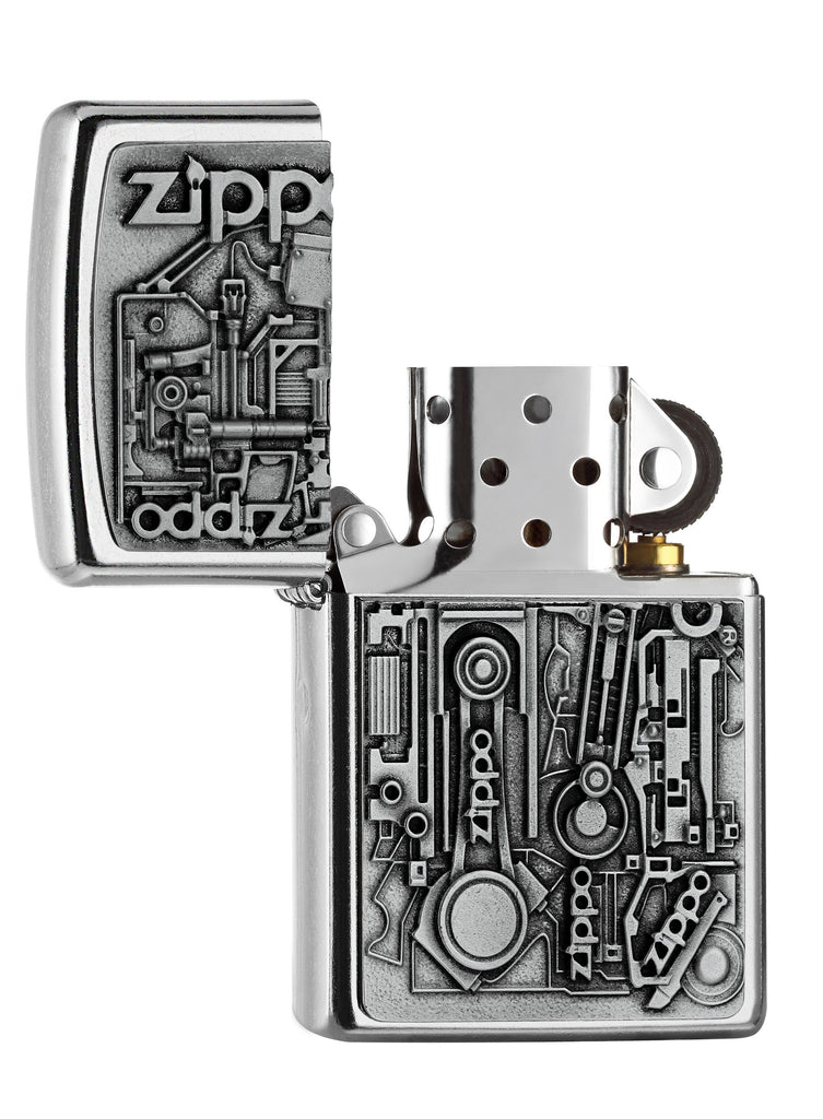 Wir haben verschiedene Bauteile eines Motors auf einem Feuerzeug abgebildet. Genau wie Zippo ist ein Motor stets in Bewegung und sorgt für Fortschritt.