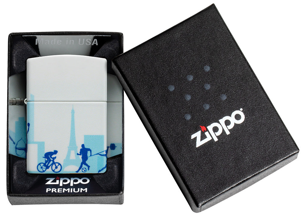 Vom Radfahren bis zum Gewichtheben, vom Bogenschießen bis zum Speerwerfen – Ihre Lieblingssommerspiele sind auf diesem atemberaubenden 540 Color-Feuerzeug brillant eingefangen. Auf jeder Seite des lebendigen Stücks erscheinen Wettkämpfer als Silhouette vor der Pariser Skyline.