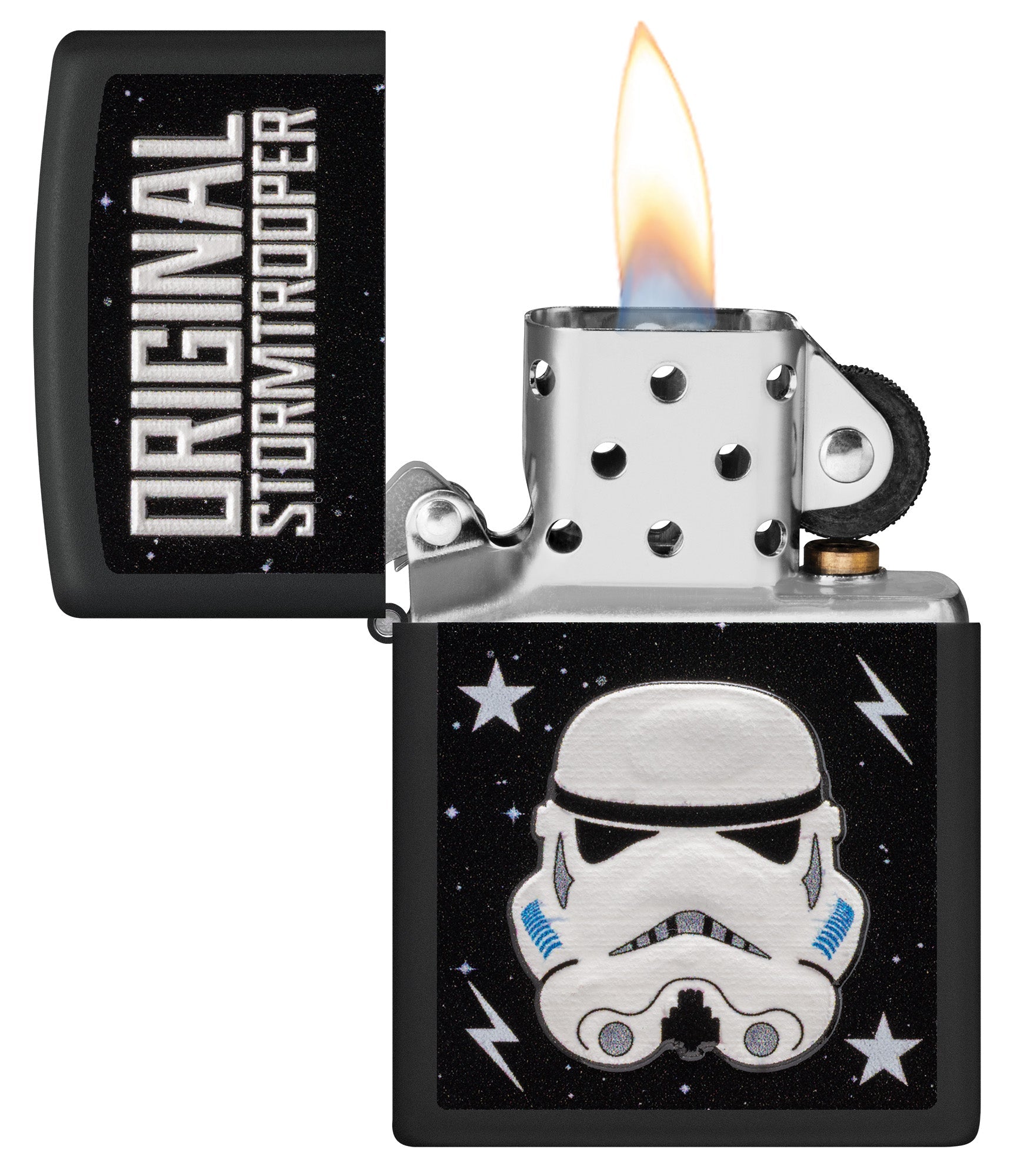 Dieses Design von Original Stormtrooper, der vielleicht bekanntesten Kampftruppe der Galaxis, passt perfekt zu diesem klassischen Feuerzeug in Schwarz matt. Der ikonische Helm erscheint unter dem Original Stormtrooper-Logo in einem Textur-Print-Design, das sich von der Oberfläche des Feuerzeugs abhebt.