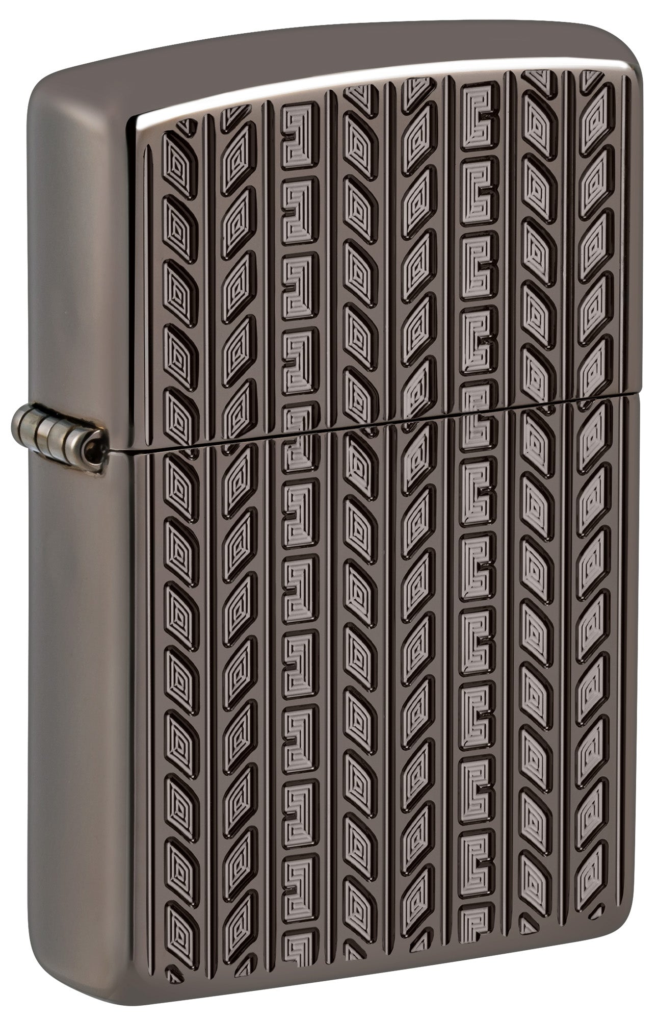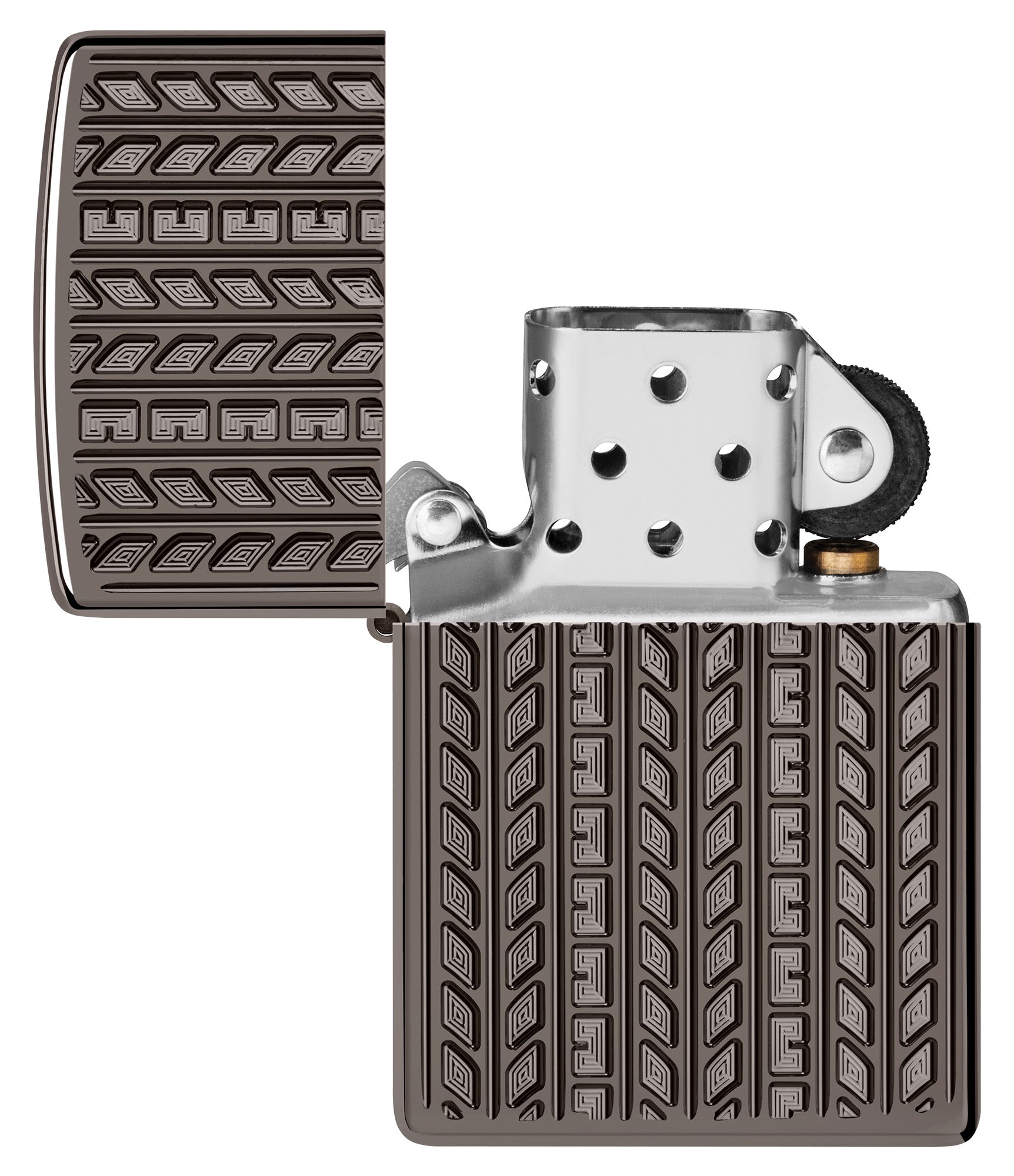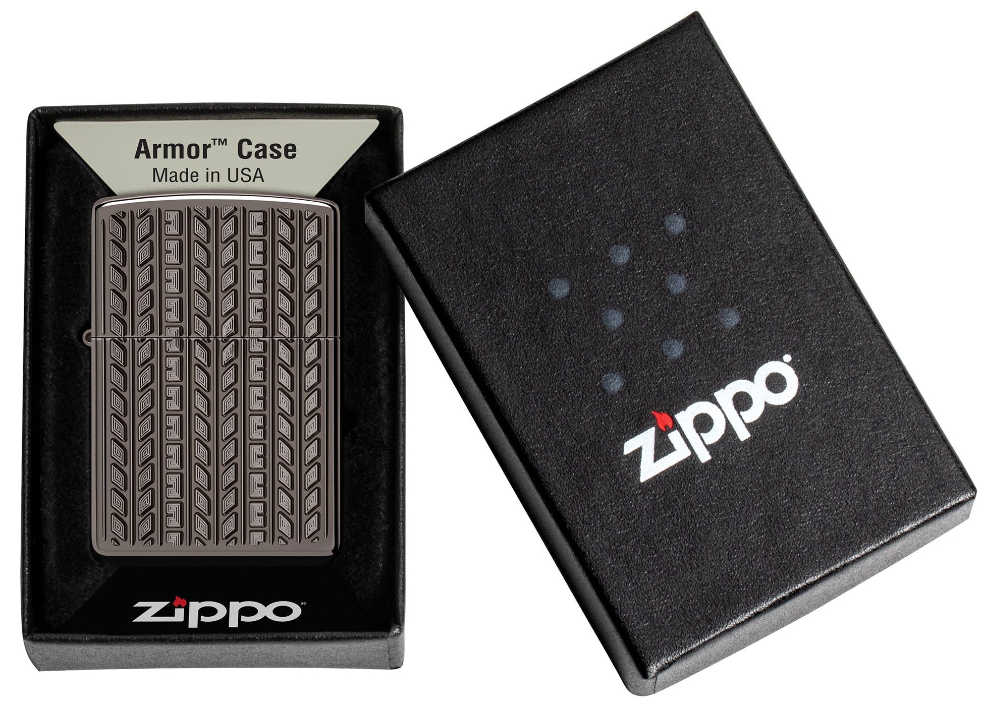Noch nie sah ein Reifenprofil so edel aus. Unser Tiefgravur-Verfahren reproduziert das Aussehen und die Textur auf diesem Armor® Black Ice®-Feuerzeug in einem raffinierten, symmetrischen Design.