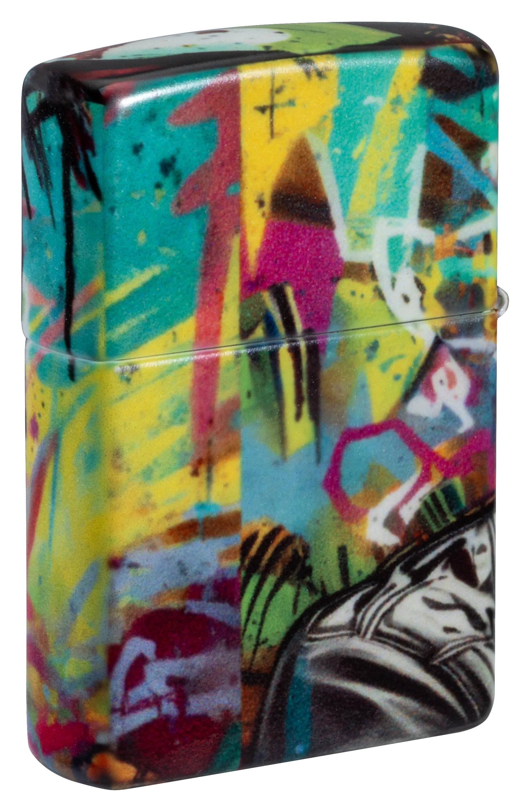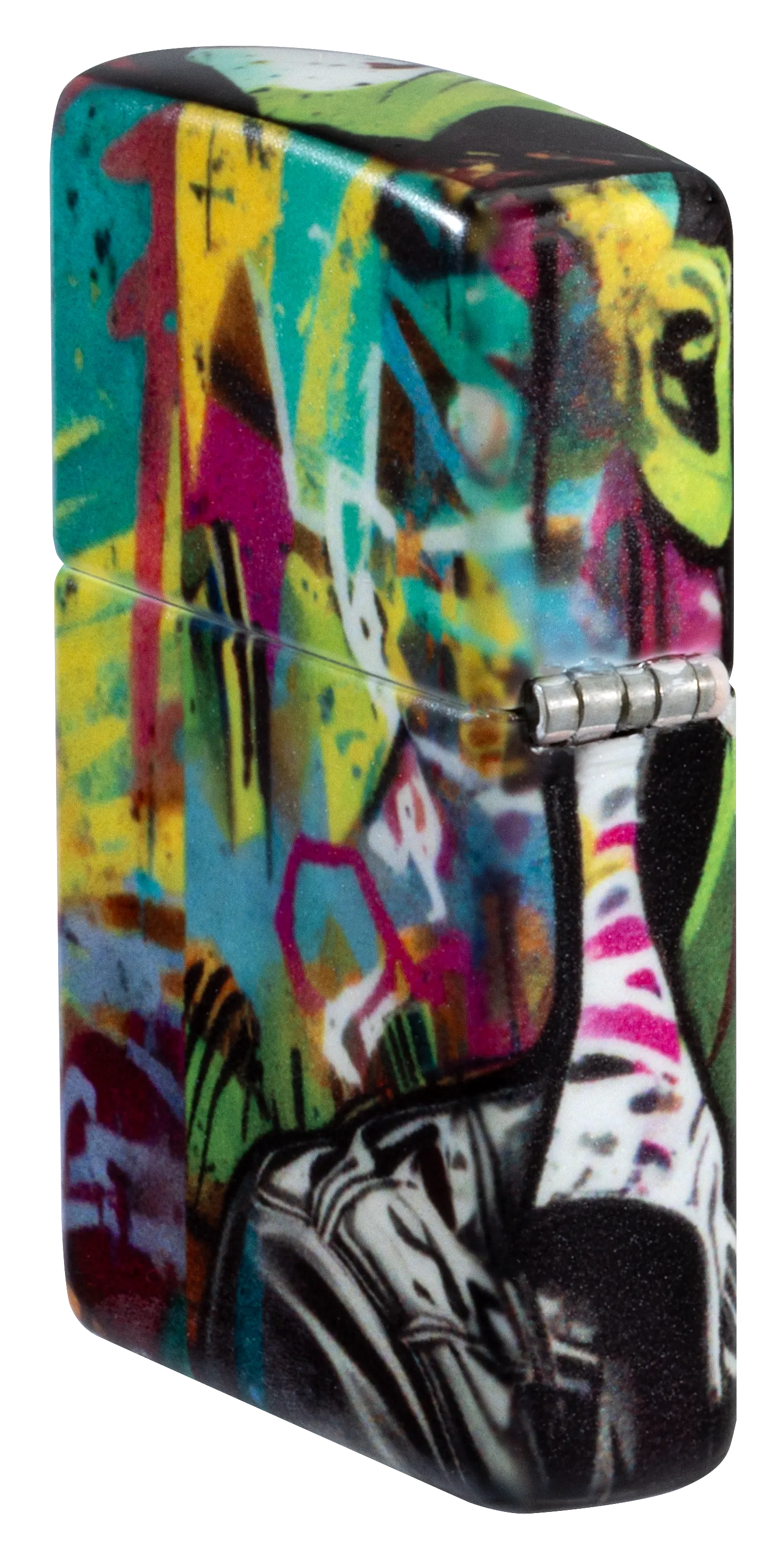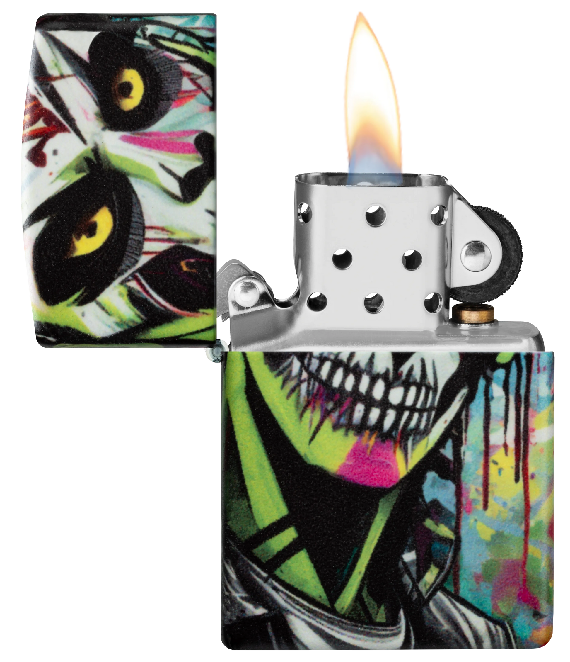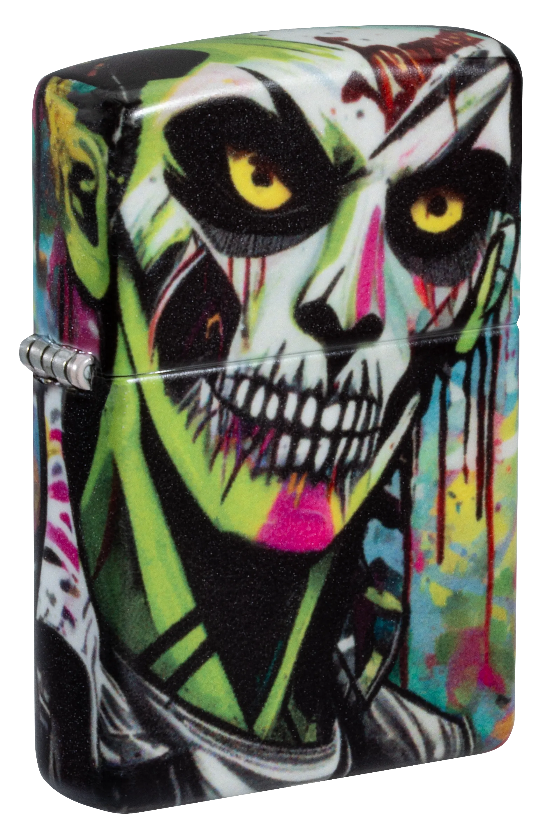 Surrounded by vibrant bursts of color, a zombie scowls from the surface of this classic 540 Color lighter in a graffiti-inspired design, which extends around all sides of the piece.