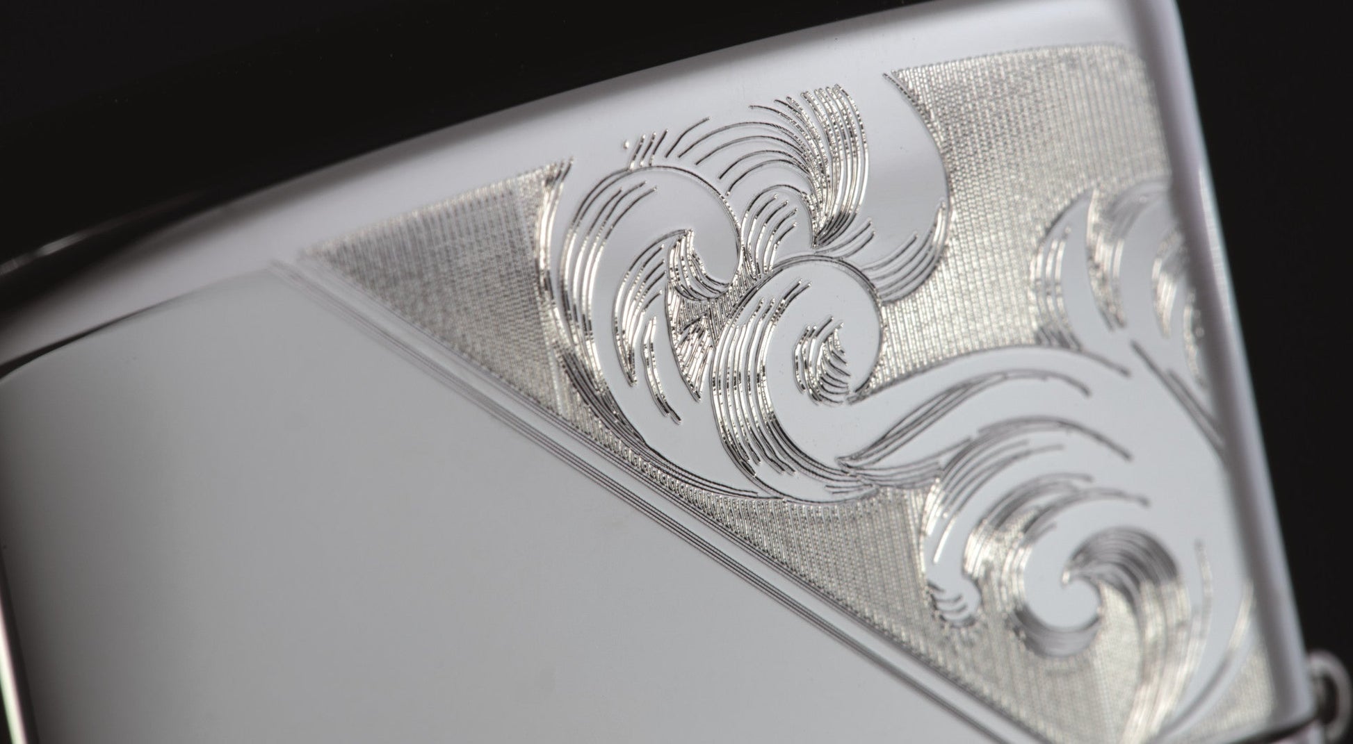 Die kunstvollen geschwungenen Linien und Verzierungen dieses diagonalen Filigran-Designs entstehen durch die klassische Auto-Engraving-Technik von Zippo. Sie verleihen dem Sterlingsilber-Feuerzeug mit High Polish Finish besondere Akzente und Tiefe. Klare und präzise Effekte werden durch dimensional gefüllte Gravurstriche erzielt, die das elegante Schmuckdesign zusätzlich hervorheben. Wird in einer Geschenkbox geliefert. Für optimale Leistung mit Zippo-Feuerzeugbenzin befüllen.