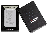 Ein grinsendes Skelett mit Irokesenfrisur ist auf diesem klassischen High Polish Chrome Feuerzeug in einem komplizierten Lustre Design dargestellt.