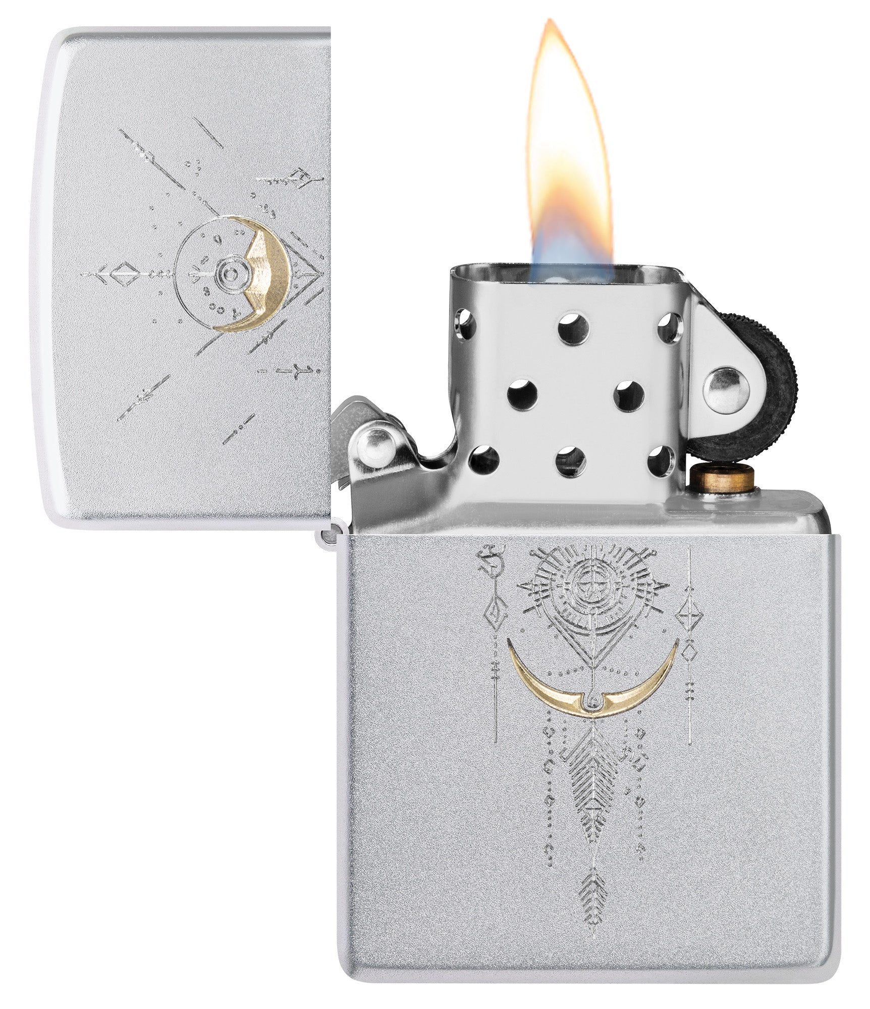 Verleihe deiner Sammlung mit diesem klassischen Feuerzeug in satiniertem Chrom etwas Ruhe und Beschaulichkeit. Das zweifarbige Design zeigt ein beruhigendes geometrisches Muster in kontrastierenden Chrom- und Messingtönen.